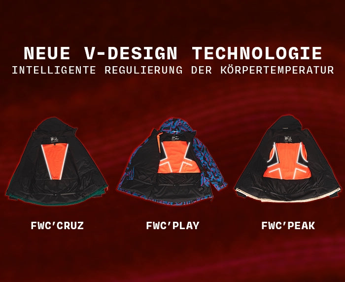 Jede Snowjacke mit V-Design-Technologie bietet anpassungsfähige Wärme, langlebigen Komfort und leistungsstarken Schutz vor unerwarteten Bedingungen. So kannst du länger draußen bleiben, härter fahren und jede Line, jeden Sprung und jede Kurve ohne Einschränkungen genießen